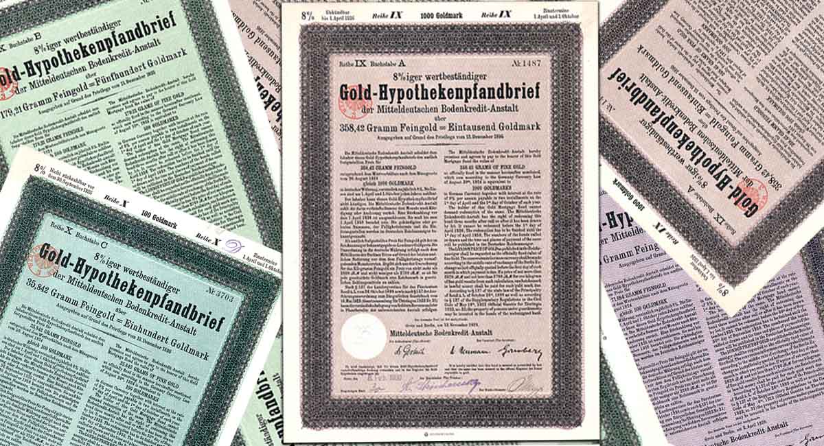 В свое время банк Mitteldeutsche Bodenkredit-Anstalt был одним из крупнейших финансовых учреждений Германии. Основанная в декабре 1895 года, компания сыграла большую роль в облегчении доступа к кредитам для покупки и строительства недвижимости в Германии. Имея штаб-квартиры в Грайце (Greiz) и Берлине, Mitteldeutsche Bodenkredit-Anstalt поддерживала экономический и городской рост в период перемен и развития.