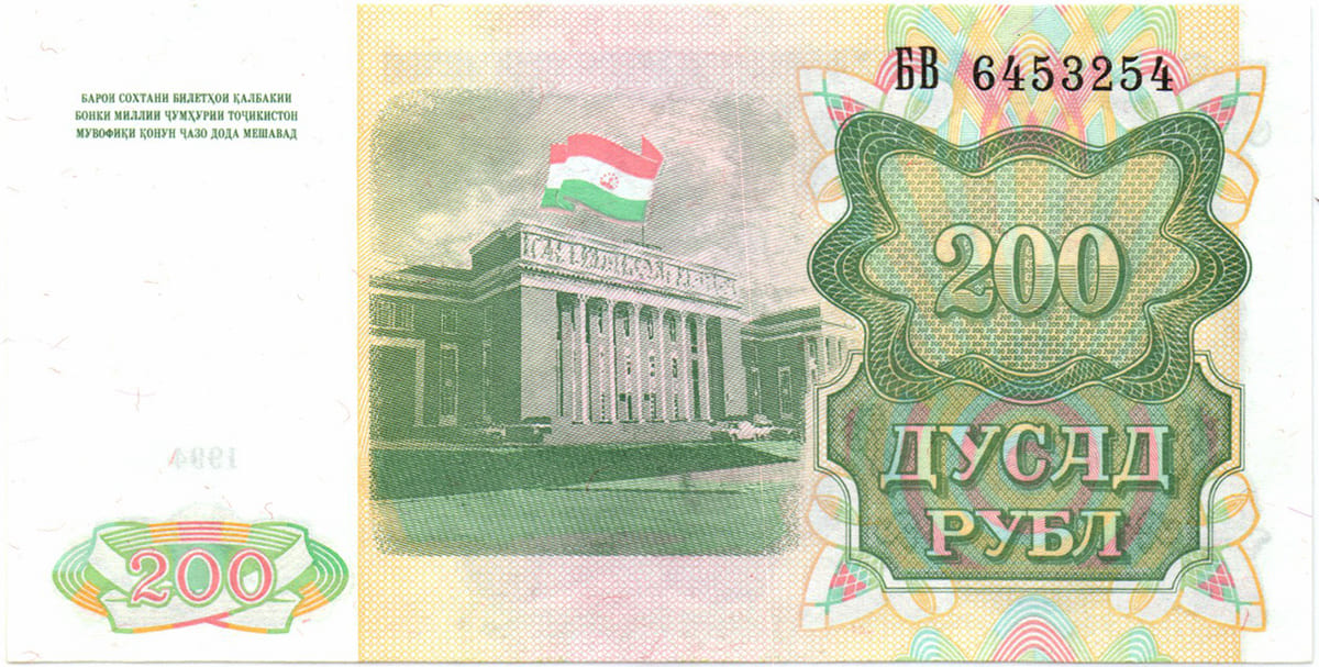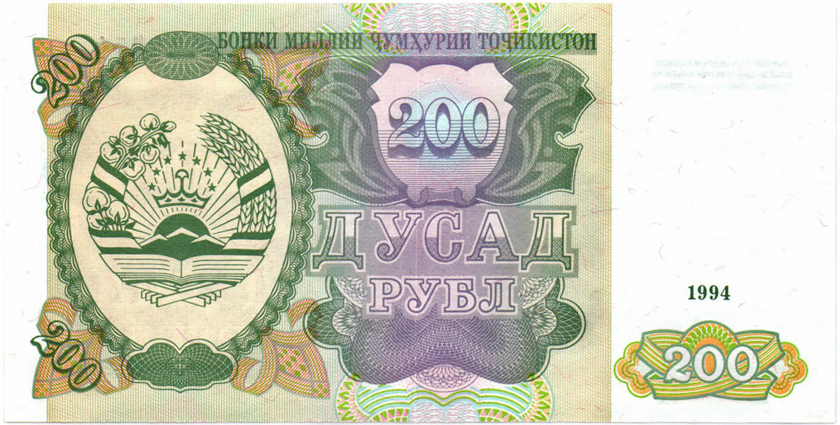 | 200 рублей Таджикистана 1994 Размер: 120×60 мм |